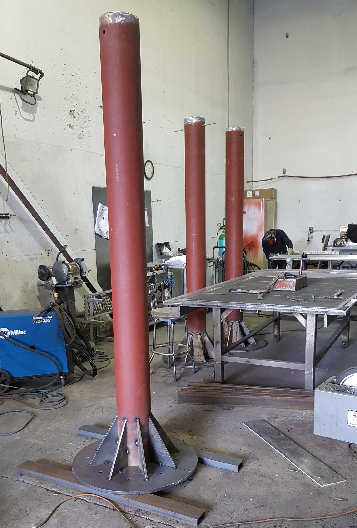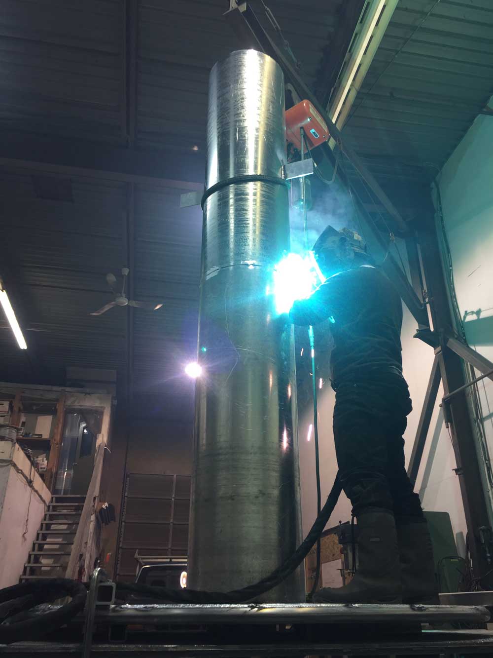 Our 12’ long 150 tonne press break can handle a variety of plate sizes for accurate bends with a quality finish. Combined with the plasma table we can create elaborate patterns and form them to cut down on seams. Our rolling machine can handle up to 2” sch 40 pipe and a variety of angles and channels.