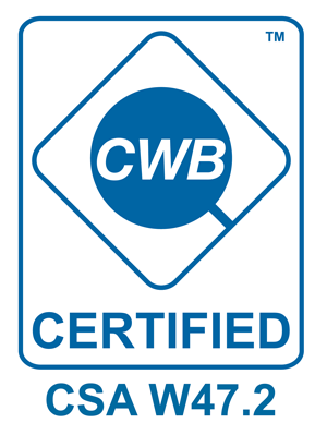 O.T. Fabricating is proud to be accredited with the certifications of CSA W47.2 and CSA W47.1 by the Canadian Welding Bureau